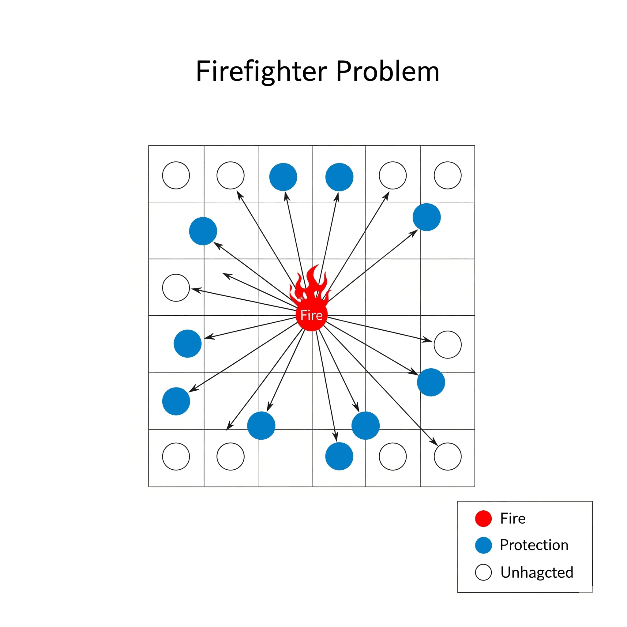 Inspiré du “Firefighter Problem” introduit par B. Hartnell (1995), ce projet vise à créer un simulateur interactif du processus de propagation du feu et de sa défense par des pompiers sur un graphe – modélisé ici sous forme de grille.